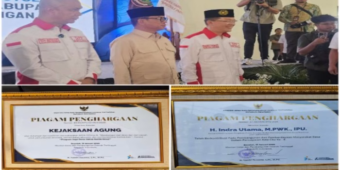 Pada kesempatan tersebut, Menteri Desa dan Pembangunan Daerah Tertinggal, Yandri Susanto, memberikan penghargaan kepada Jaksa Agung Muda Intelijen Kejaksaan Agung RI, Prof. Dr. Reda Manthovani, serta Ketua Umum DPP ABPEDNAS, Ir. Indra Utama, M.PWK, IPU, atas kontribusi nyata mereka dalam penguatan tata kelola desa.