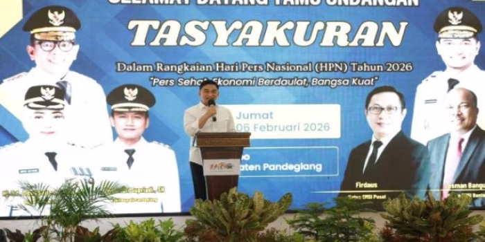 Hal tersebut disampaikan Dimyati saat memberikan sambutan pada Tasyakuran Hari Pers Nasional (HPN) 2026 yang digelar di Pendopo Kabupaten Pandeglang, Jumat (6/2).