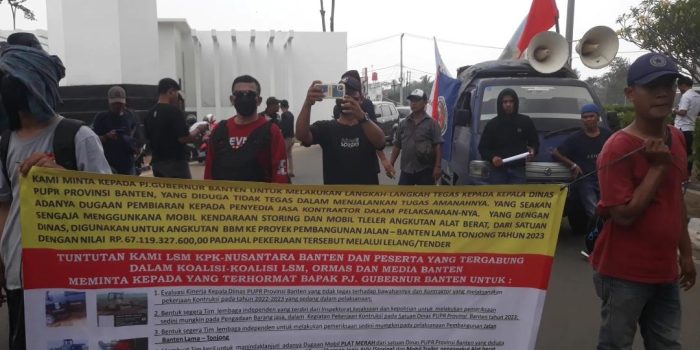 Tuntutan masa aksi tersebut yakni segera periksa dan penyidikan serta pengawasan terhadap oknum oknum yang tidak bertanggung jawab terhadap pembangunan jalan di Banten khususnya di Jalan Banten Lama – Tonjong dan Copot Kepala Dinas PUPR diduga tidak becus memberikan arahan kepada bawahannya.