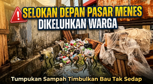 Kondisi selokan di depan Pasar Menes, Kabupaten Pandeglang, dikeluhkan warga karena mengalami penumpukan sampah yang cukup parah. Aliran air yang seharusnya berfungsi sebagai saluran drainase kini tampak tersumbat oleh berbagai jenis sampah yang menumpuk.